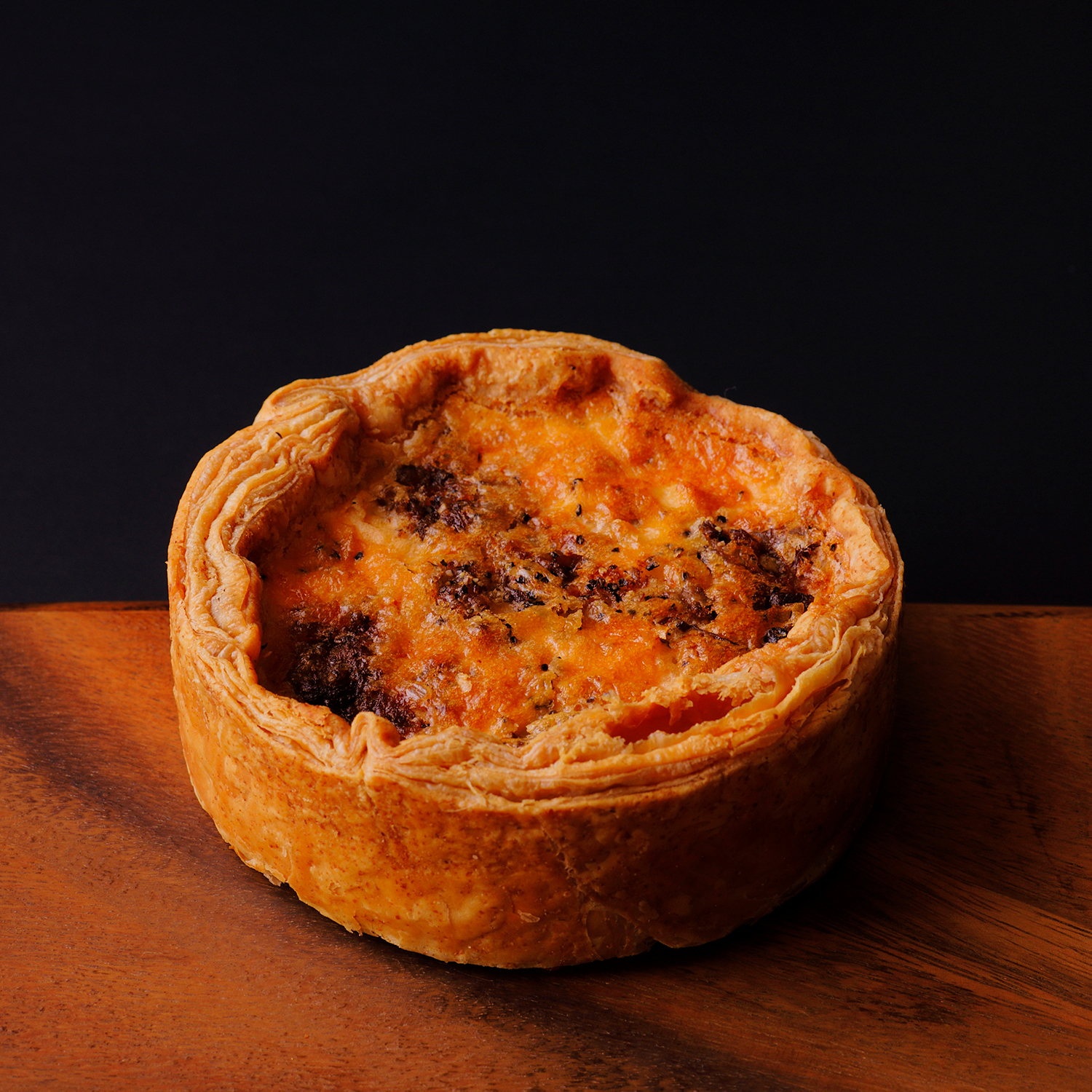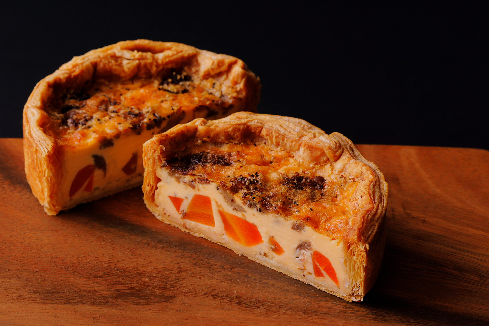 A5ランクの山形県産黒毛和牛のすじ肉をダシ醤油で柔らかく味付け。人参の甘味がプラスされたおかずらしいキッシュ。温めて、お好みで七味をどうぞ。