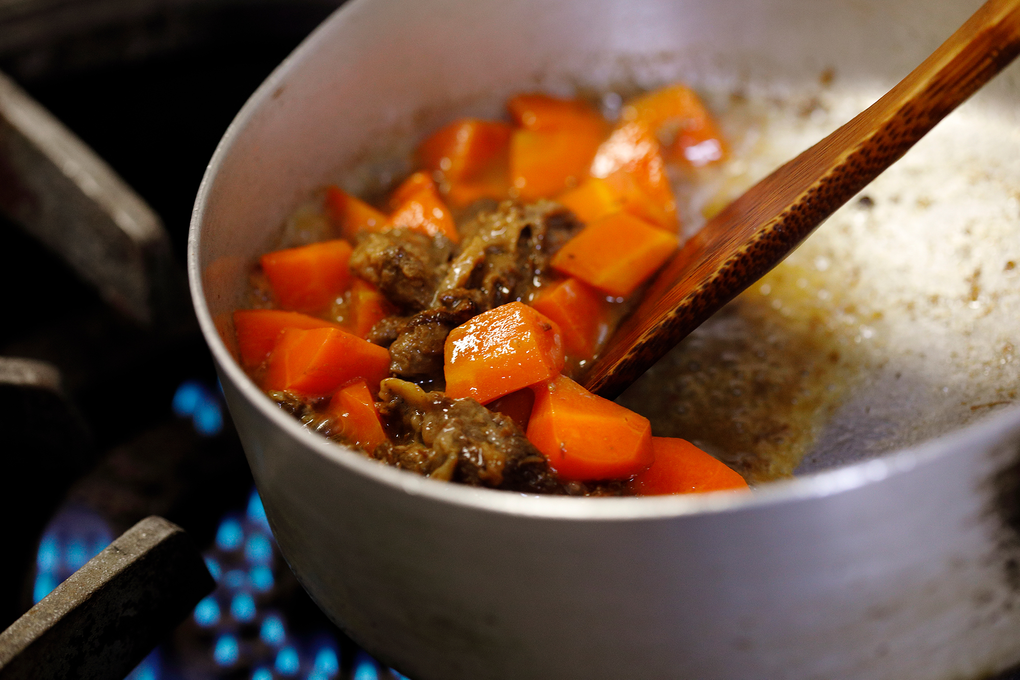 国産黒毛和牛の中でも、特にキメが細かく、脂質が美味しいと言われている山形県産を使用。圧力鍋で炊き上げるため、とにかく柔らかい!温めて食べると生地に脂がしみこみさらに美味しくなります。