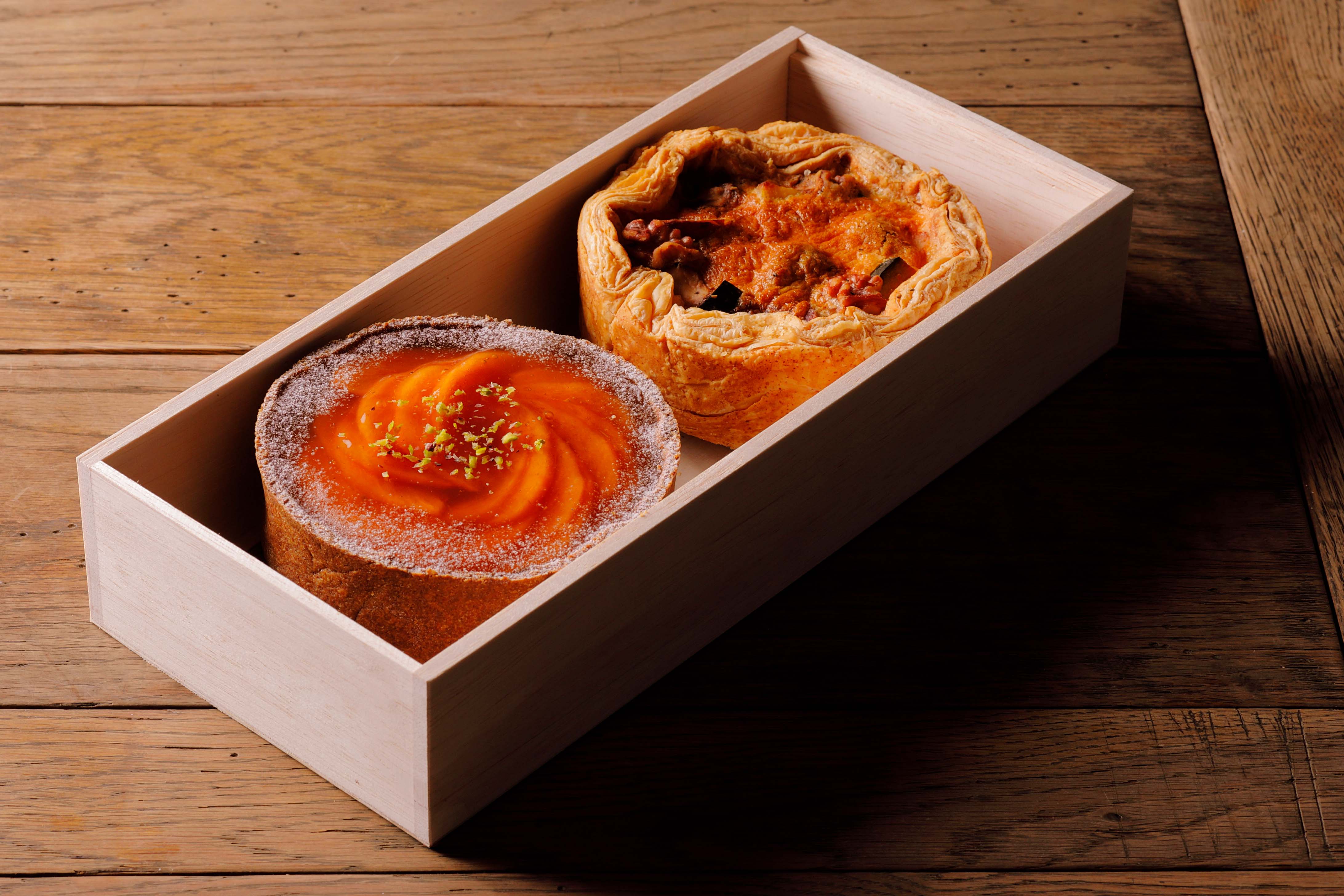 【秋の味覚とゴルゴンゾーラのキッシュ】×【柿と生キャラメルのタルト】