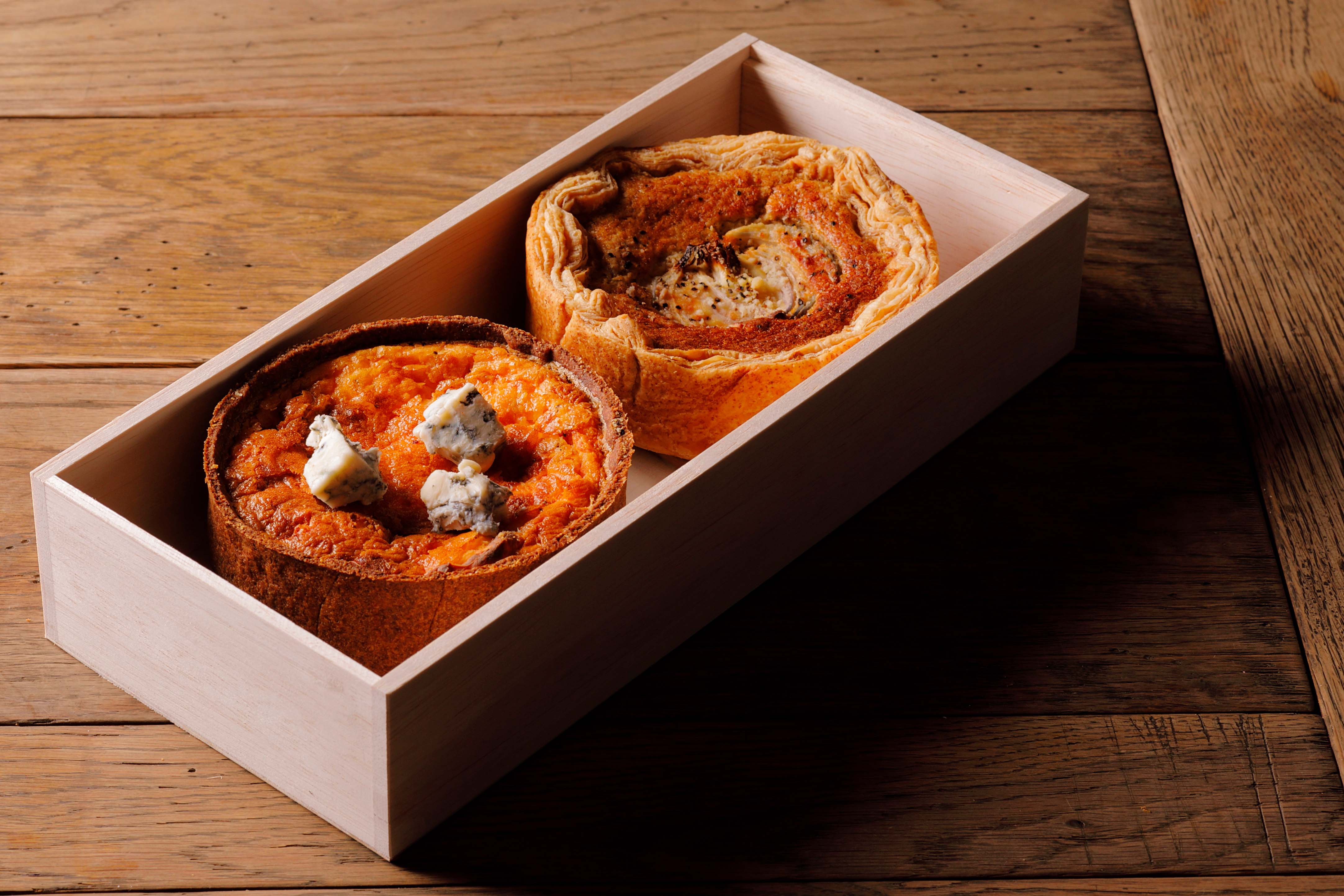 レカーセの新定番・オンライン限定商品「キッシュチポラ」と、4種のチーズの個性を生かして焼き上げた「クワトロフロマッジョ」。