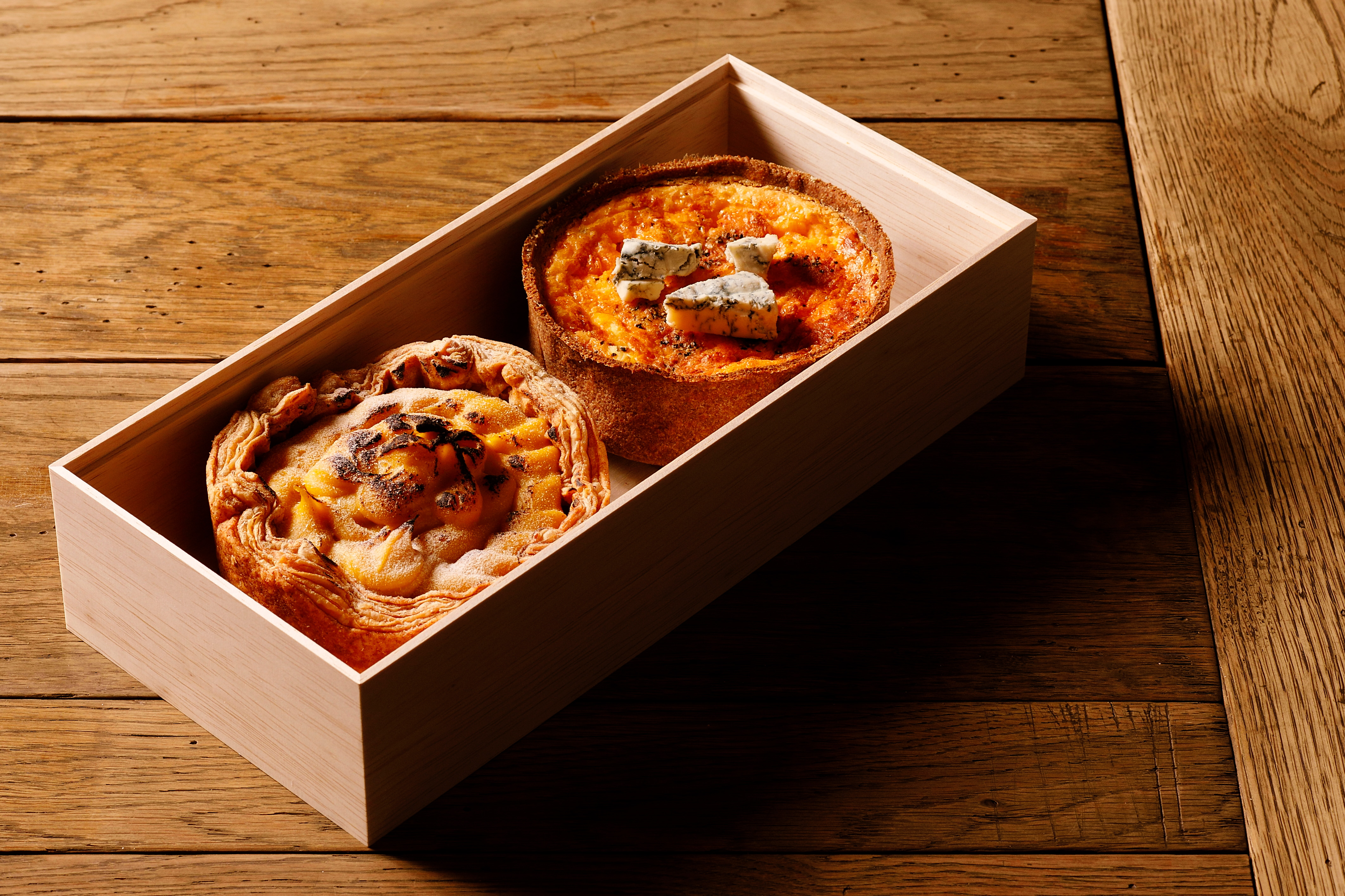 4種のチーズの個性を生かして焼き上げた「クワトロフロマッジョ」と、3層のクリームが絶妙にマッチしたデザートパイがセットに。