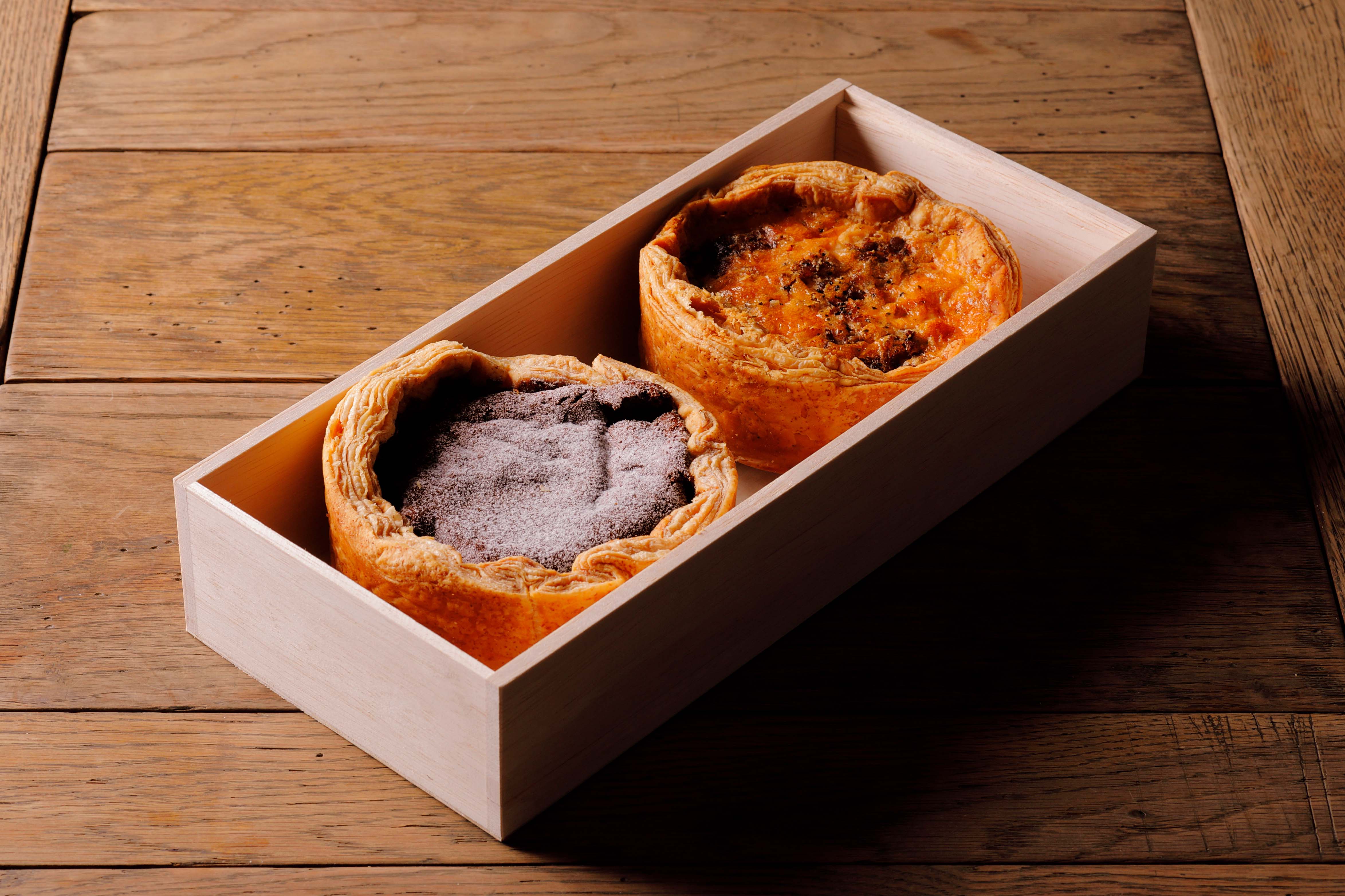 さっくり生地に、なめらかなチョコ食感が人気のガトーショコラパイと、山形牛の旨みを凝縮した和風キッシュのコンビ。